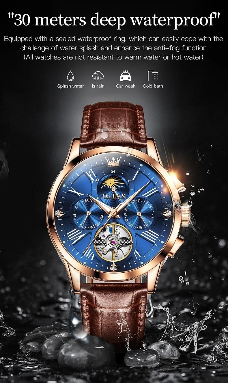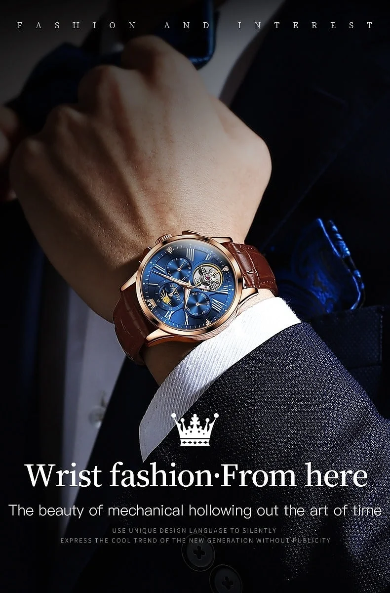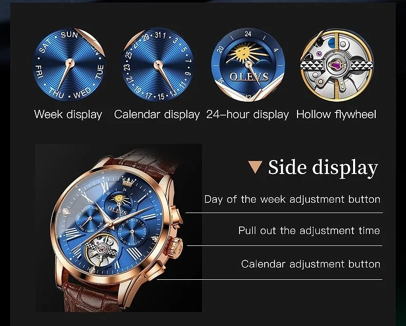 + Free ShippingThe OLEVS 6728 is really different from the Full Calendar version. This OLEVS 6728 is a Skeleton mechanical watch. It is made for people who want to see the OLEVS 6728 movement, from the front. They want to see all the parts that make the OLEVS 6728 work.